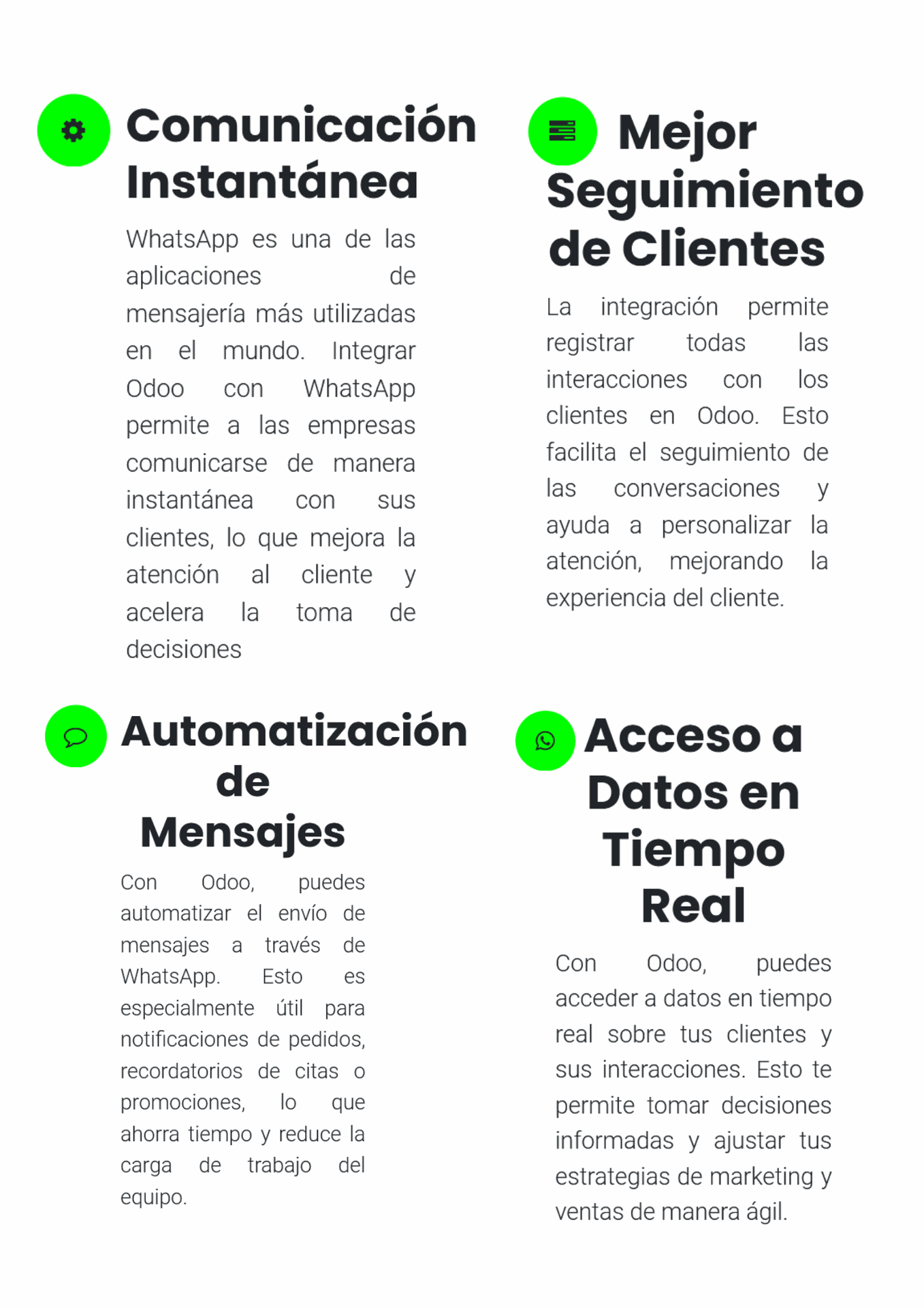 En la era digital, la comunicación efectiva y la gestión eficiente son clave para el éxito de cualquier negocio. Odoo, una de las plataformas de gestión empresarial más completas, se integra perfectamente con WhatsApp, permitiendo a las empresas optimizar sus procesos y mejorar la interacción con sus clientes. En este artículo, exploraremos algunos tips y las ventajas de utilizar Odoo junto con WhatsApp.